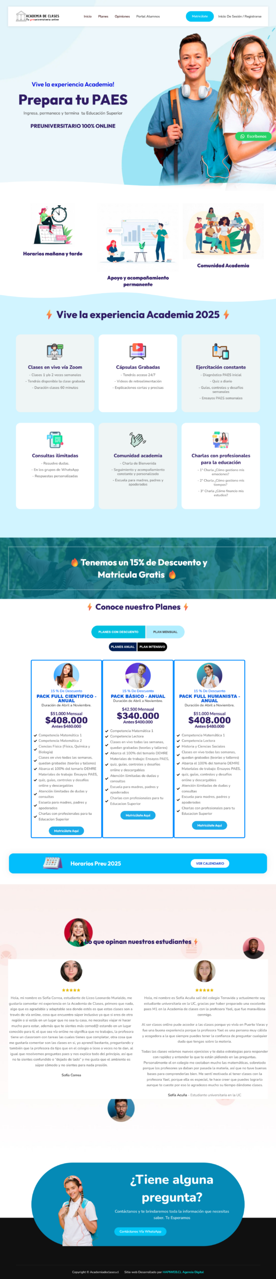 academiadeclases.cl es una plataforma web desarrollada para una academia educativa enfocada en clases online y preparación académica, ofreciendo información clara sobre sus programas, modalidades y servicios.